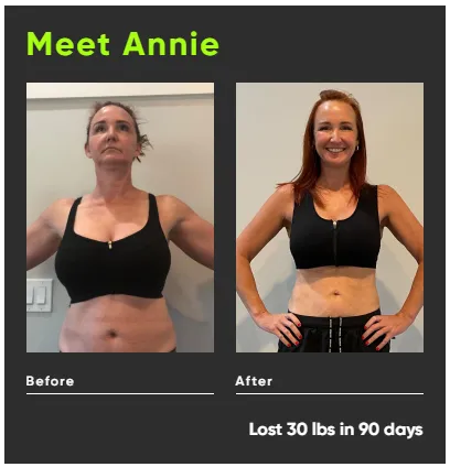 Hey it's Annie! I dropped 39 pounds and actually kept it off this time. Surprisingly, I'm never hungry, and I've got more energy now. Thanks to this program, I feel like a brand new person, inside and out!